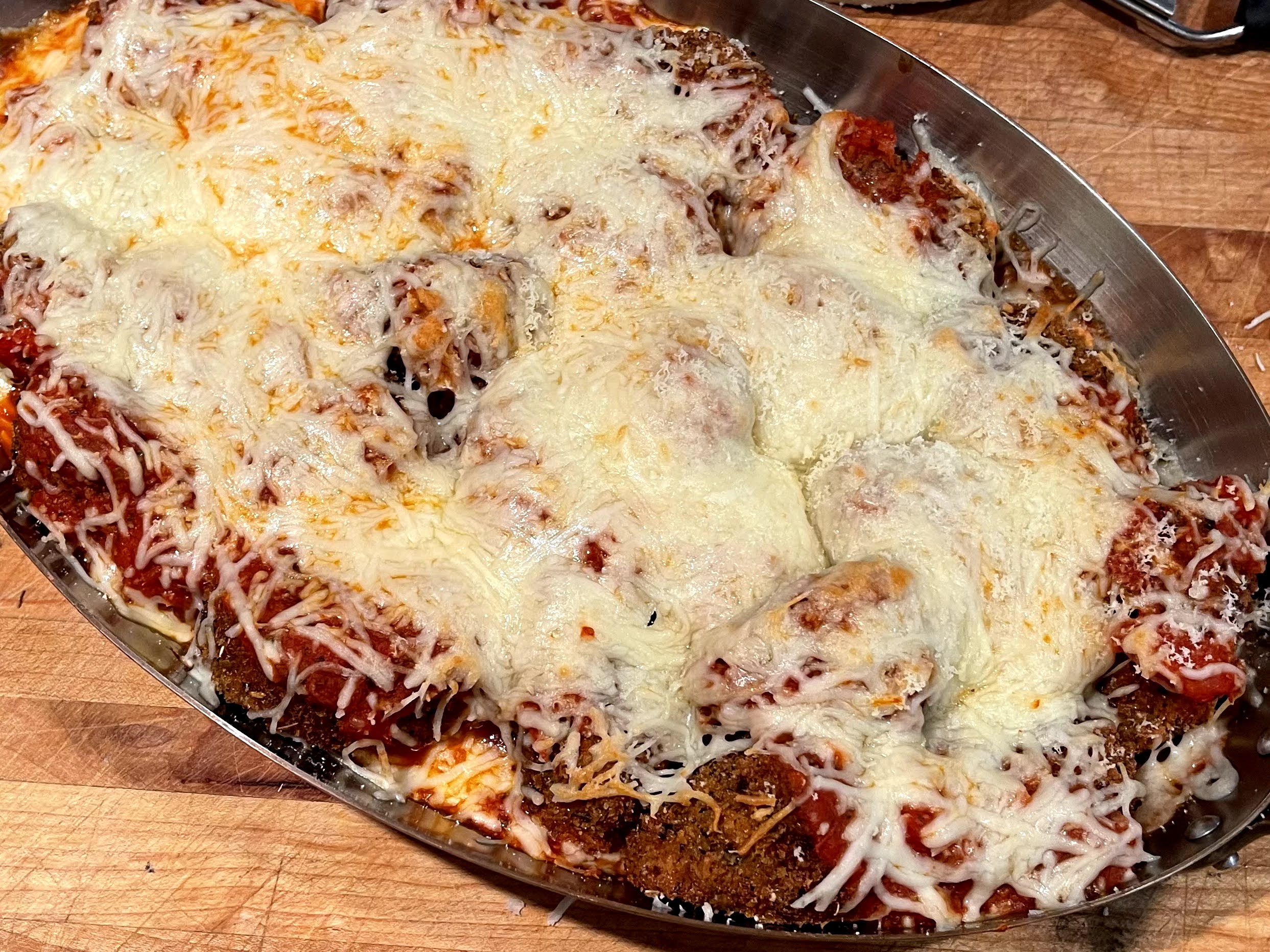 I used Panko Bread Crumb with lots of Italian seasonings plus Parmesano Cheese.